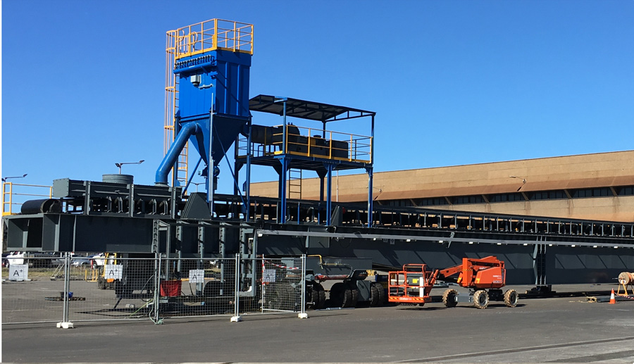 通過提升機(jī)將物料提升,降低尾車的供料高度